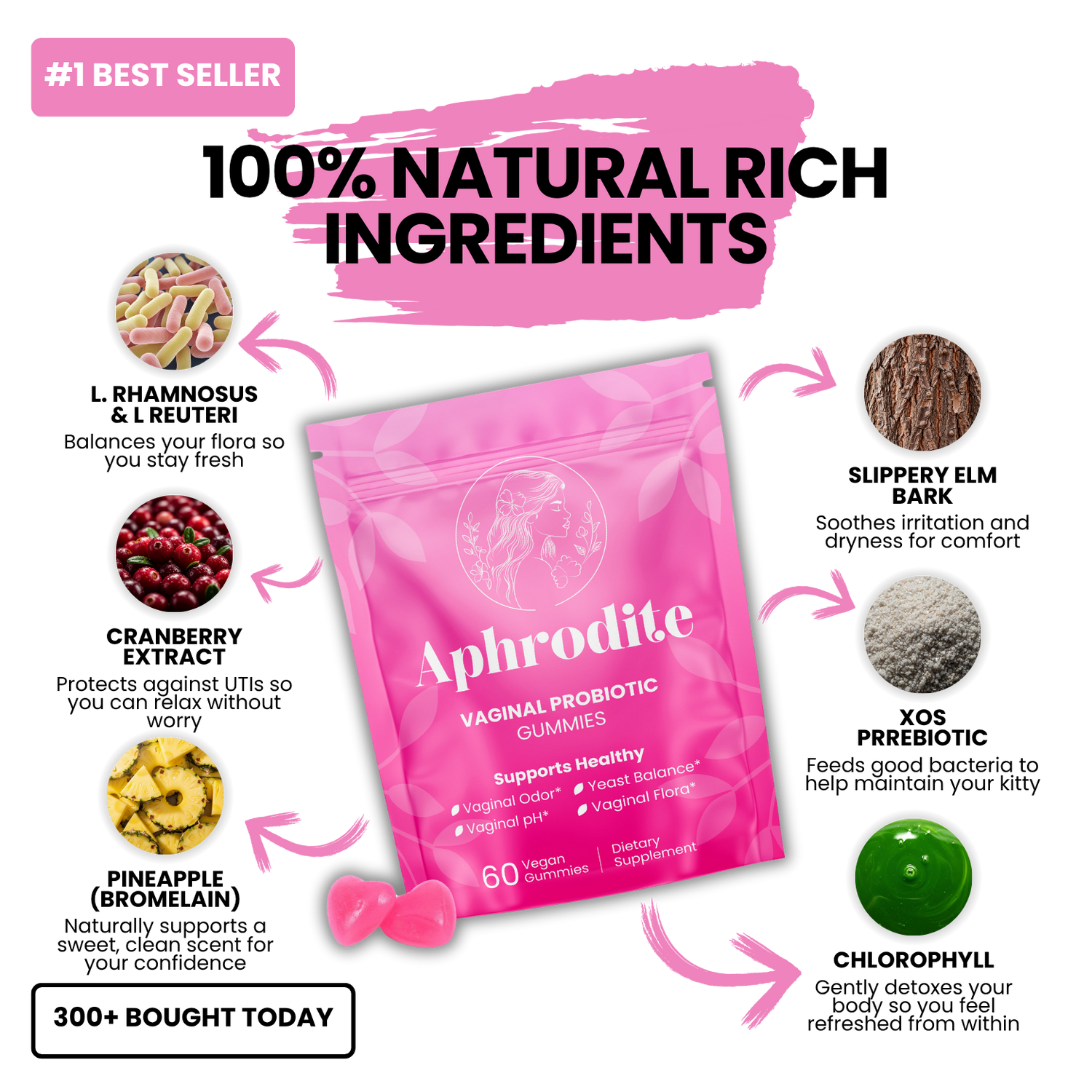 Aphrodite Probiotic Gummies are powered by 100% natural ingredients